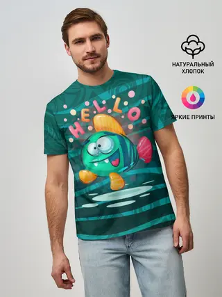 Мужская базовая футболка / Рыбка Hello