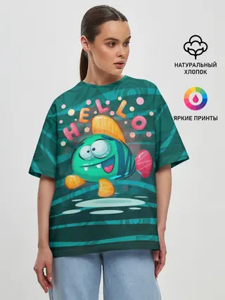 Женская футболка оверсайз / Рыбка Hello
