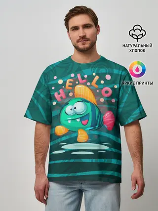 Мужская футболка оверсайз / Рыбка Hello
