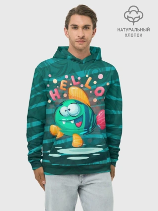 Худи мужской база хлопок / Рыбка Hello