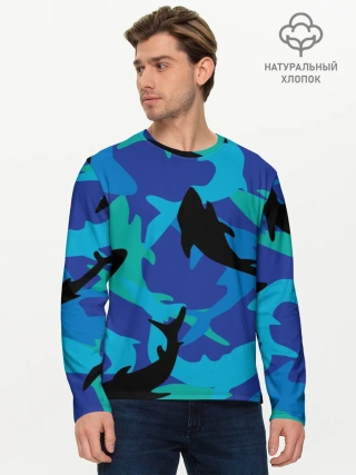 Мужской лонгслив базовый / Акулы паттерн