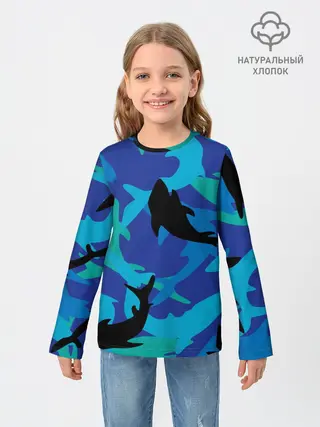Детский лонгслив / Акулы паттерн