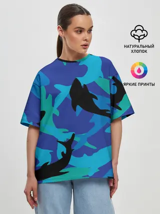Женская футболка оверсайз / Акулы паттерн