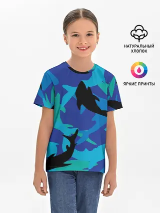 Детская базовая футболка / Акулы паттерн