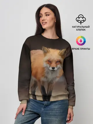 Лонгслив женский. Хлопок / Абстрактная лиса