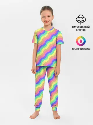 Детская пижама с брюками / Радужные волны