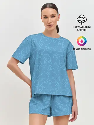 Женская пижама с шортами / Рыбки на голубом