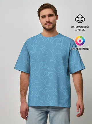 Мужская футболка оверсайз / Рыбки на голубом
