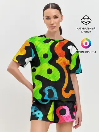 Женская пижама с шортами / Разноцветные Кляксы Фигуры