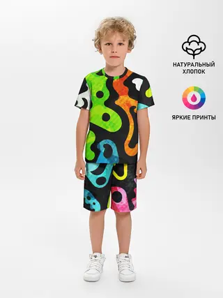Детская пижама с шортами / Разноцветные Кляксы Фигуры