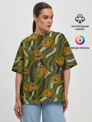 Женская футболка оверсайз / Пираньи камуфляж