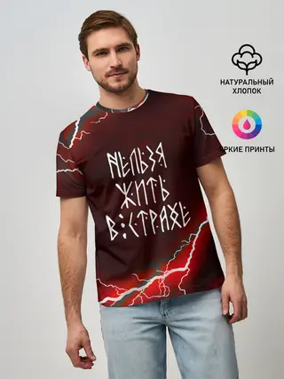 Мужская базовая футболка / НЕЛЬЗЯ ЖИТЬ В СТРАХЕ | ЖИЗНЬ БЕЗ СТРАХА