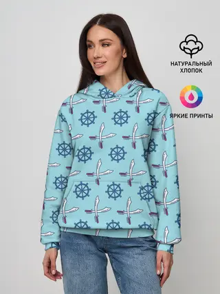 Лонгслив женский. Хлопок / Корабли и девушка викинг