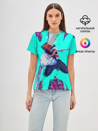 Женская базовая футболка / ЧЕЛОВЕК БЕНЗОПИЛА ДЕНДЖИ