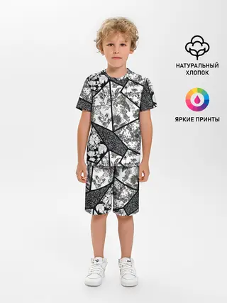 Детская пижама с шортами / Цветочный Кинцуги / Kintsugi