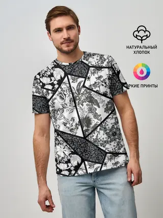 Мужская базовая футболка / Цветочный Кинцуги / Kintsugi