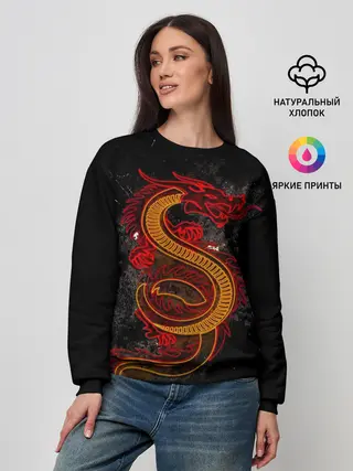 Лонгслив женский. Хлопок / Красный Дракон