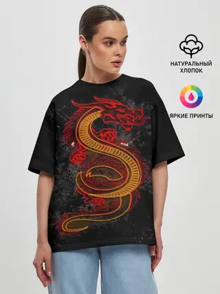 Женская футболка оверсайз / НЕОНОВЫЙ ДРАКОН, 3d
