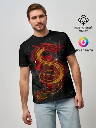 Мужская базовая футболка / НЕОНОВЫЙ ДРАКОН, 3d