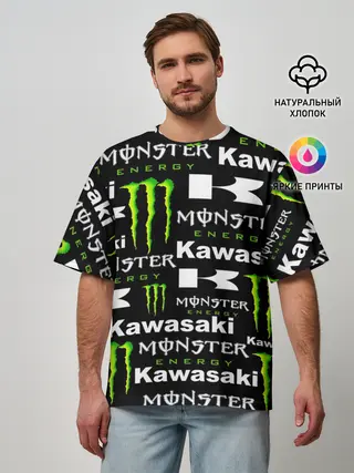 Мужская футболка оверсайз / KAWASAKI X MONSTER ENERGY