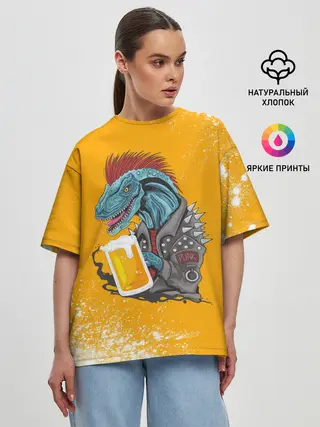 Женская футболка оверсайз / Пивозавр - Взрыв