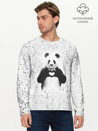 Мужской лонгслив базовый / Панда Любовь Сердце Брызги
