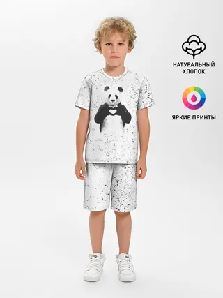 Детская пижама с шортами / Панда Любовь Сердце Брызги
