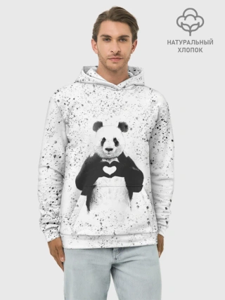 Худи мужской база хлопок / Панда Любовь Сердце Брызги