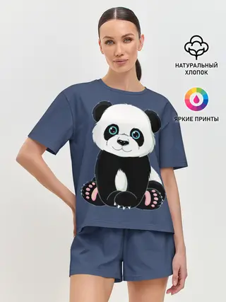Лонгслив женский. Хлопок / Панды На Велосипеде