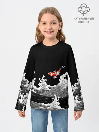 Детский лонгслив / Карп Кои Волна Япония Рыба