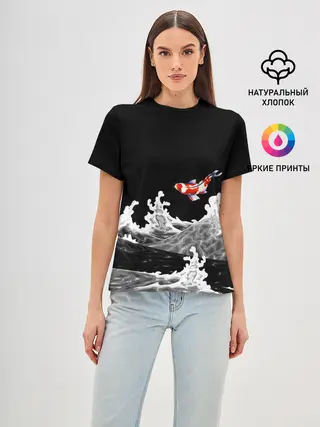 Женская базовая футболка / Карп Кои Волна Япония Рыба