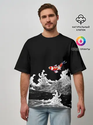 Мужская футболка оверсайз / Карп Кои Волна Япония Рыба