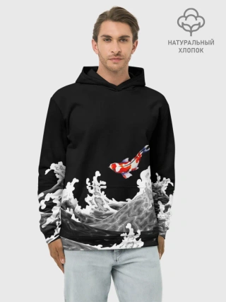 Худи мужской база хлопок / Карп Кои Волна Япония Рыба