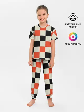 Детская пижама с брюками / Образец шахматной доски