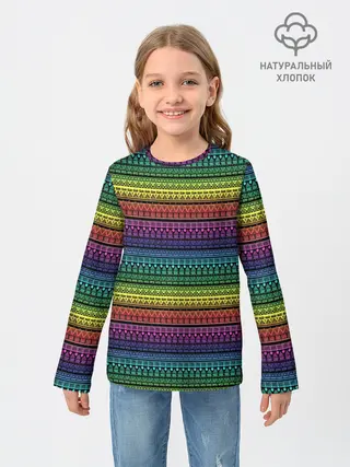 Детский лонгслив / Этнический радужный орнамент