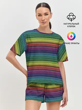Женская пижама с шортами / Этнический радужный орнамент