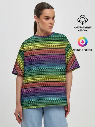 Женская футболка оверсайз / Этнический радужный орнамент