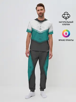 Мужская пижама с брюками / Полосатый абстрактный принт