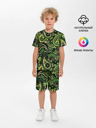 Детская пижама с шортами / Ярко зеленые славянские узоры
