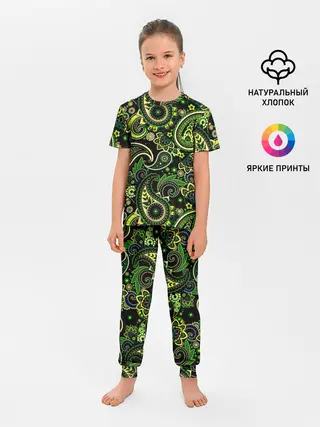 Детская пижама с брюками / Ярко зеленые славянские узоры