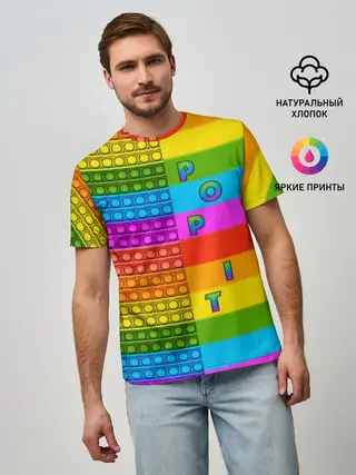Мужская базовая футболка / POP it вертикальная надпись