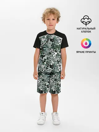 Детская пижама с шортами / Черно-зеленые каракули