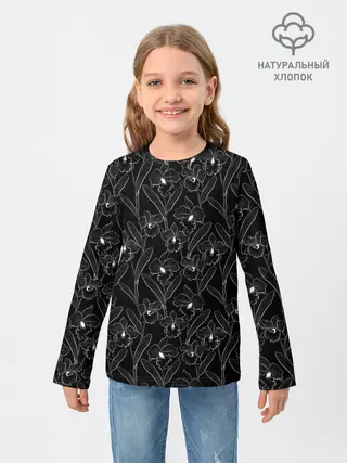 Детский лонгслив / Цветы орхидеи на черном