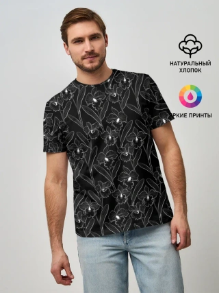 Мужская базовая футболка / Цветы орхидеи на черном