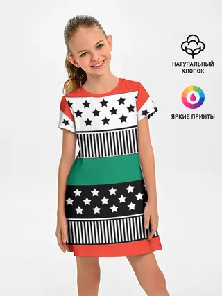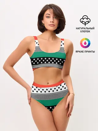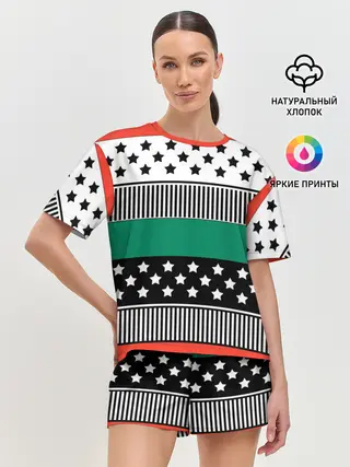 Лонгслив женский. Хлопок / Полосатый звездный узор