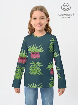 Лонгслив женский. Хлопок / Цветы рябчика на темном фоне