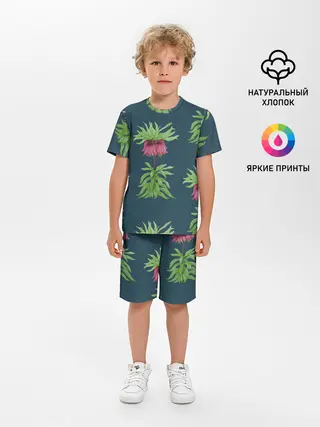 Детская пижама с шортами / Цветы рябчика на темном фоне