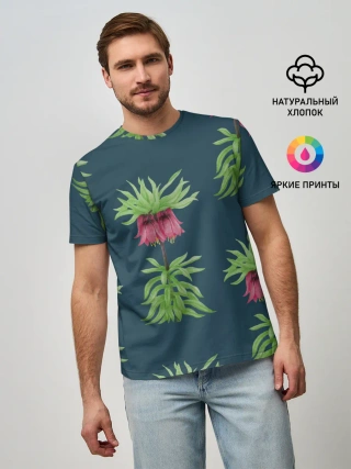 Мужская базовая футболка / Цветы рябчика на темном фоне