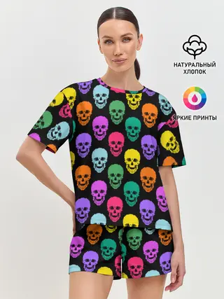 Женская пижама с шортами / Разноцветные черепа . Готика