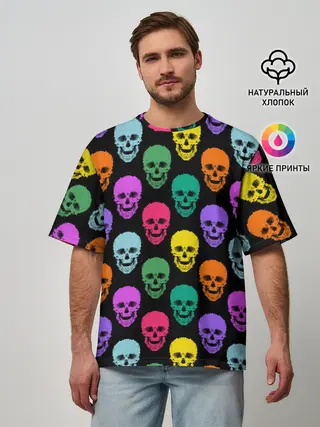 Мужская футболка оверсайз / Разноцветные черепа . Готика